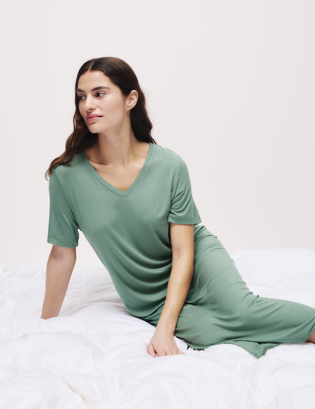 Camisón largo de manga corta con detalle de encaje - M / KAKI está agotado y se enviará tan pronto como vuelva a estar disponible.