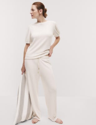 Pantalón de corte recto waffle
