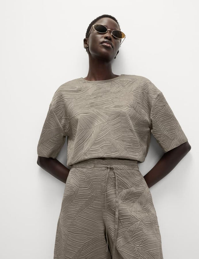 Top de manga corta con estampado en relieve - 10 / MOCHA / REG está agotado y se enviará tan pronto como vuelva a estar disponible.