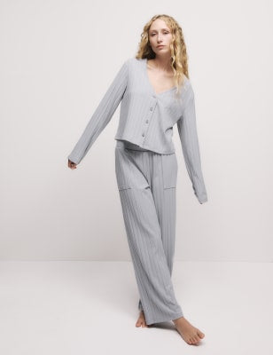 Pijama con top abotonado de manga larga