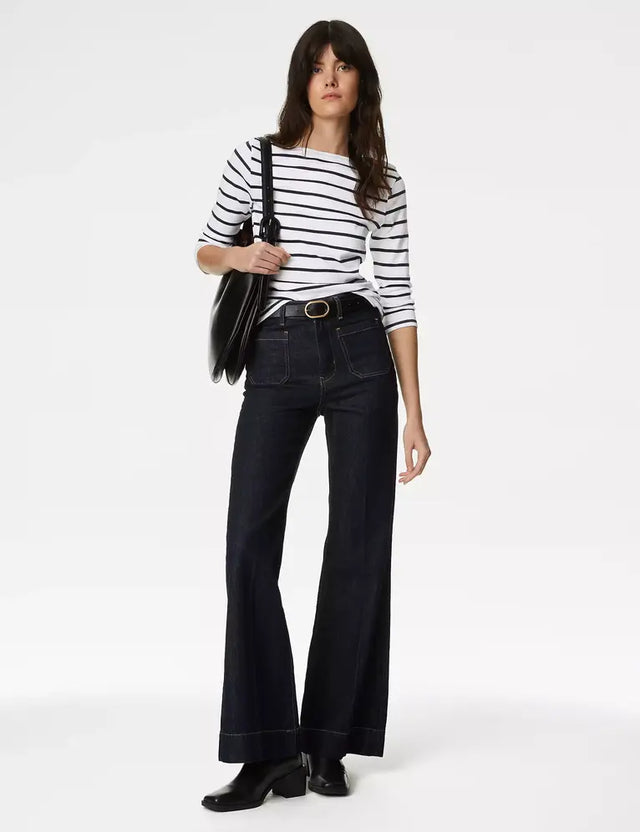 Camiseta de manga semilarga de rayas