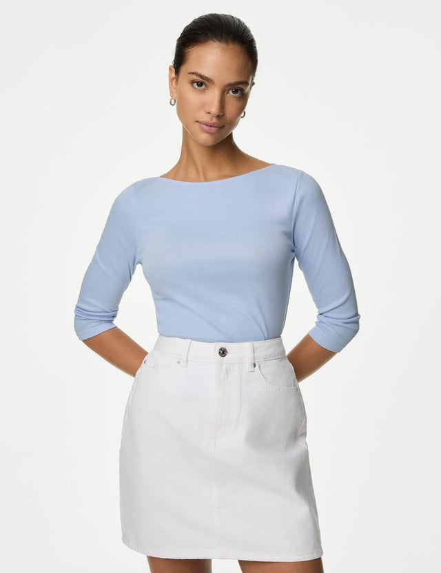 Camiseta de manga semilarga de rayas.